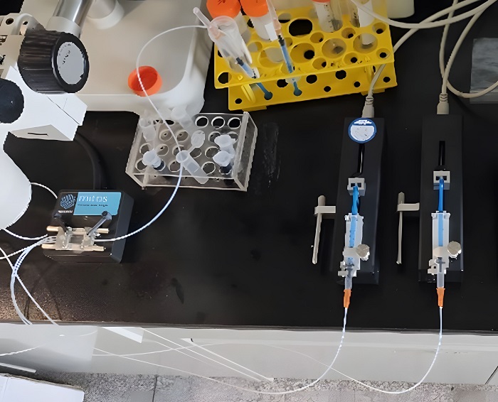 The generation of uniformly sized and consistently paced microdroplets is the key to the proper functioning of this system. The micro-injection pump, as the power source of the entire system, provides a stable microflow, delivering stable and precise driving force for the production of microdroplets.
